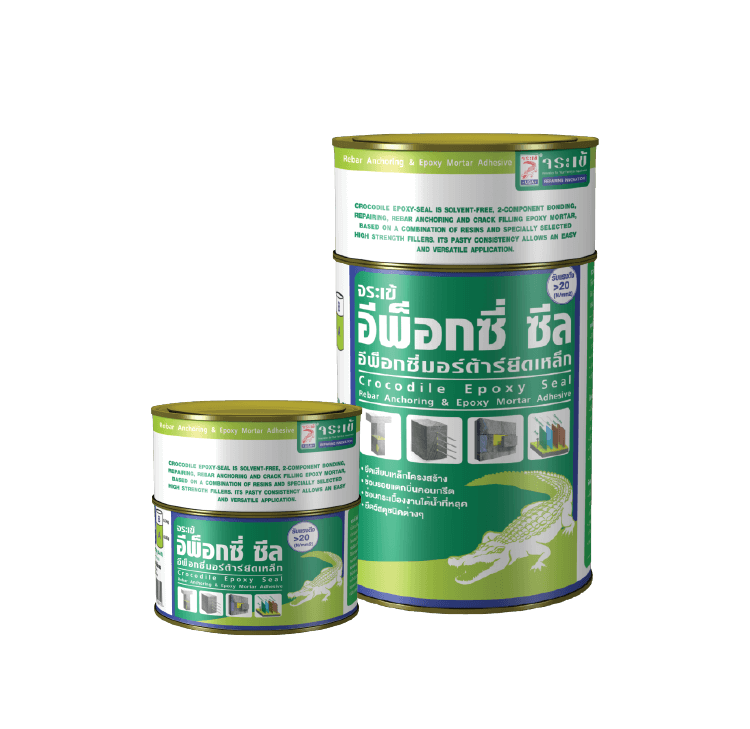 ในส่วนนี้พี่เข้ขอแนะนำ จระเข้ อีพ็อกซี่ ซีล (อีพ็อกซี่เสียบเหล็ก) ทนแรงกดและแรงดึงสูง สามารถยึดติดได้กับวัสดุทุกประเภท ใช้ได้กับเหล็กเส้นกลม และเหล็กข้ออ้อย ขนาดไม่เกิน 16 มม. แข็งตัวได้แม้อยู่ในน้ำ สามารถซ่อมแซมกระเบื้องหลุดใต้น้ำได้